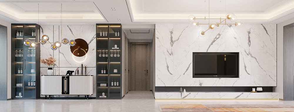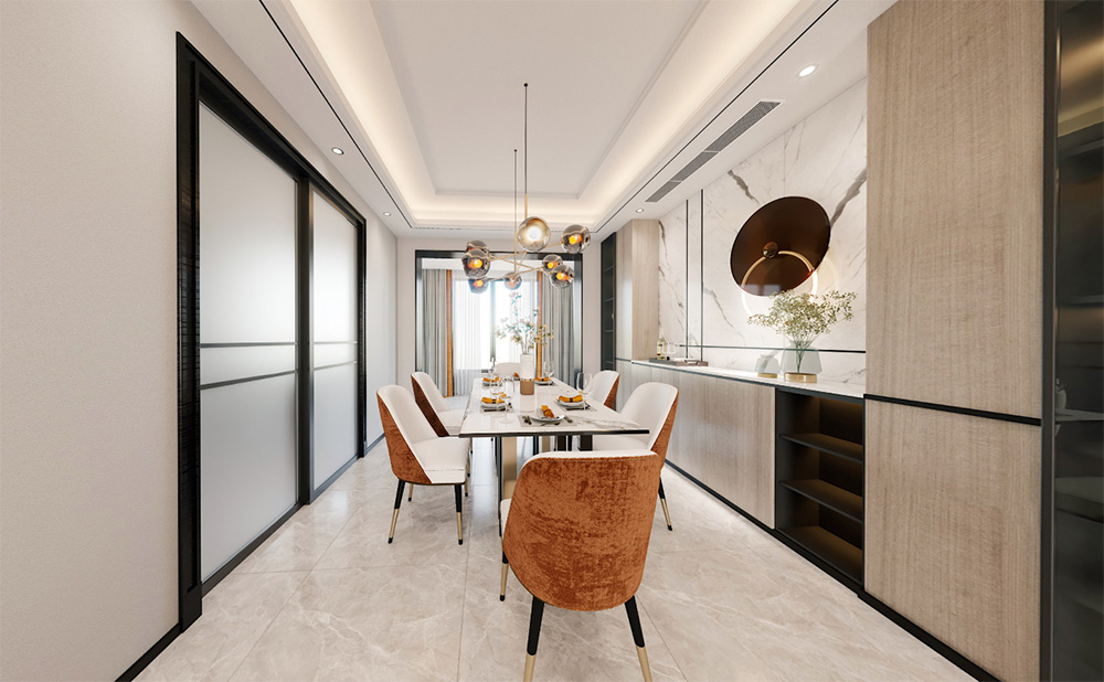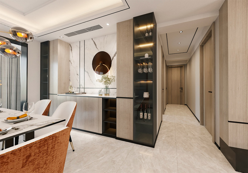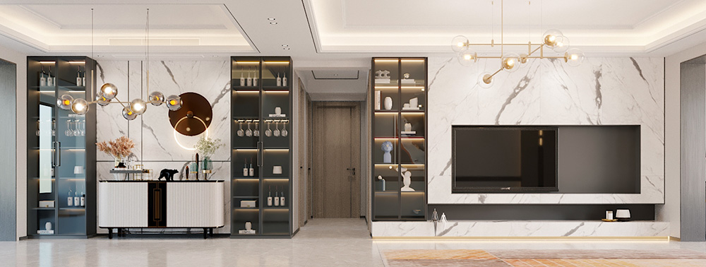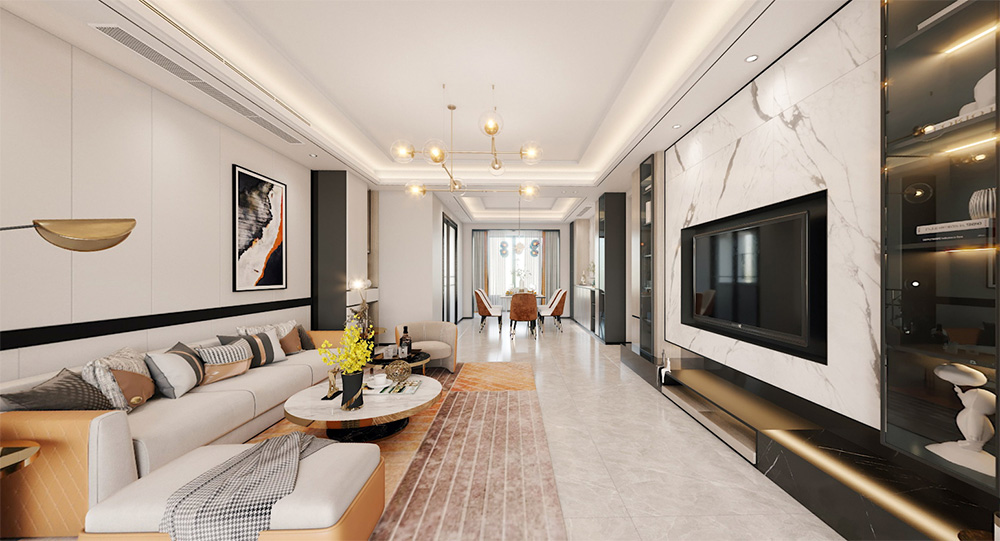 佛山潘村公寓四居輕奢風格裝修效果圖
