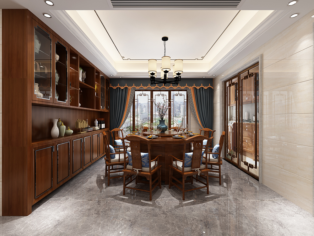 梅州奧園天韻灣四居新中式風(fēng)格裝修效果圖