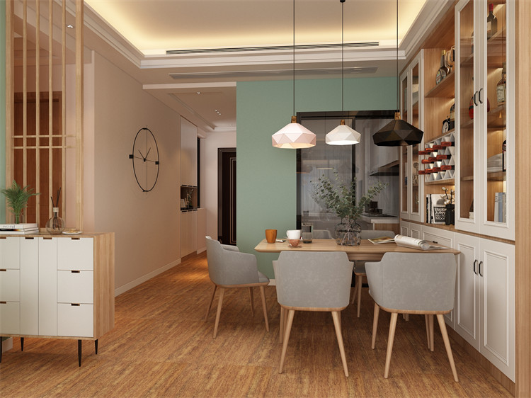 空間以臟粉為主色調,融入薄荷綠、天藍、原木等低飽和度彩色,