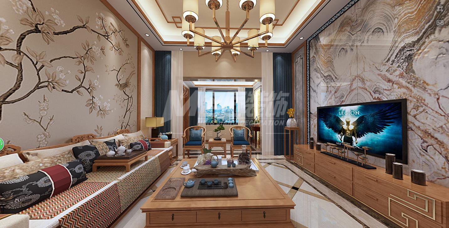 綿陽星河丹緹三居新中式風格裝修效果圖
