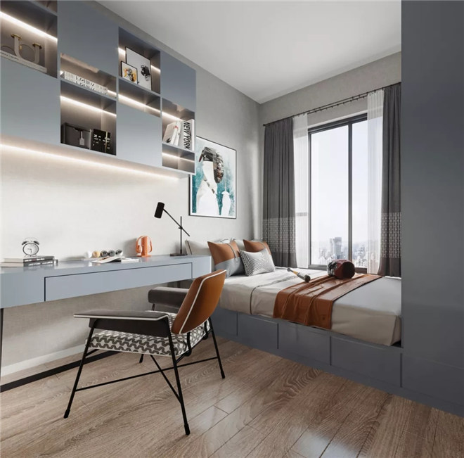孩子的世界無法用成人的眼光去剖析,不如懷著一顆童心去為孩子也為自己遙遠的童年打造一個理想的世界。墻面固定為莫蘭迪灰蘭色,兒童房的藝術感搭配,藝術畫和藝術擺件,卻能夠帶給你治愈世界的寧靜,開始嶄新的每一天。