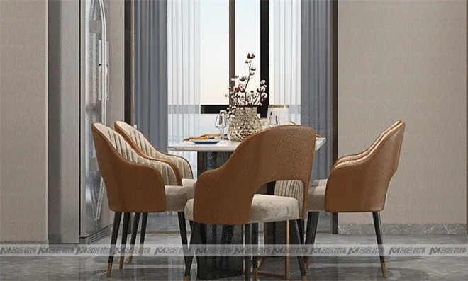 大理石電視背景墻,絲絨質地的沙發,輔以窗簾、幾何掛畫、圓形邊幾、擺件等軟裝搭配,不同材質之間相互碰撞,又相輔相成,畫面一派和諧。