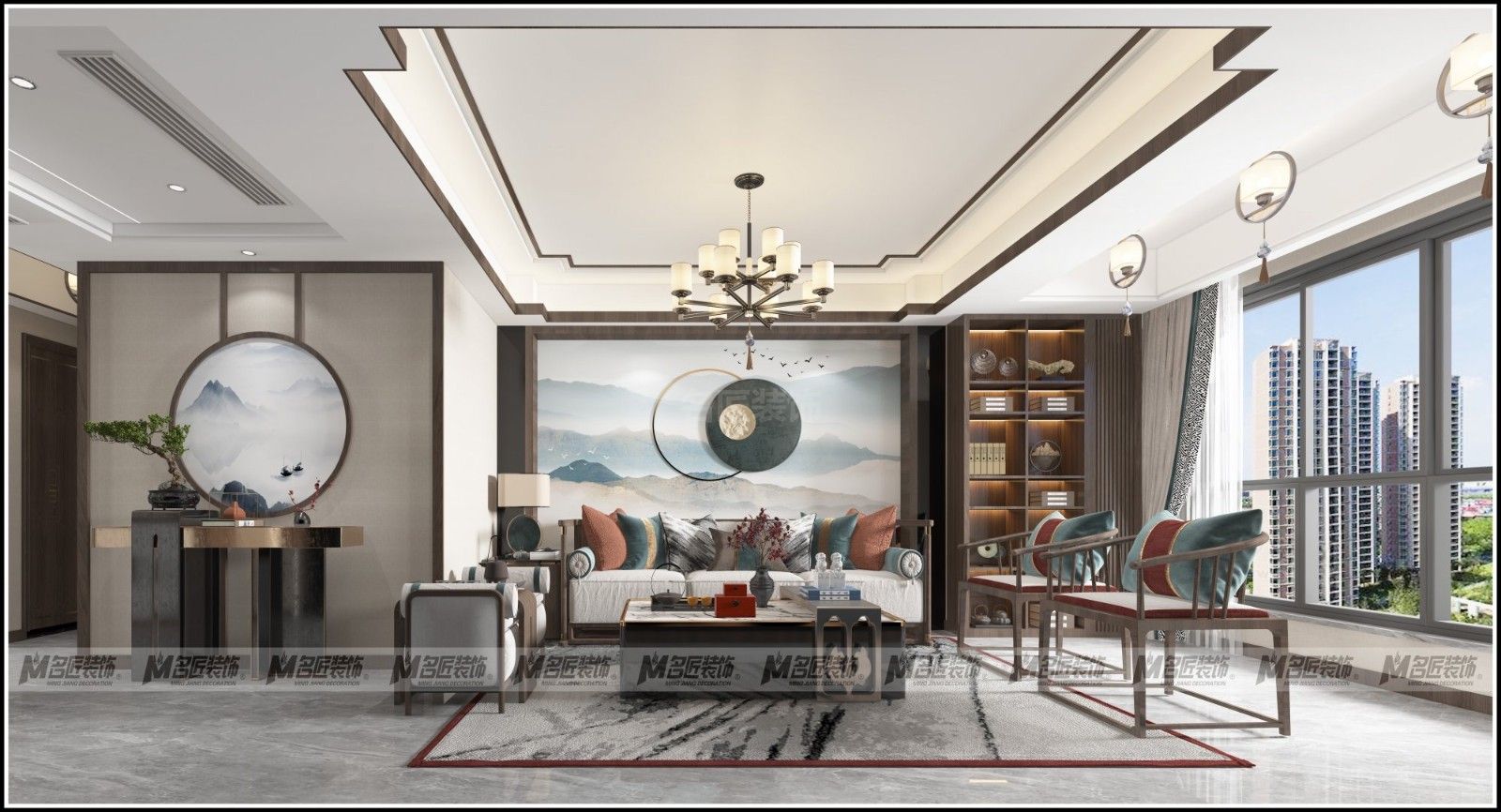 湖州臥龍莊園四居新中式風格裝修效果圖