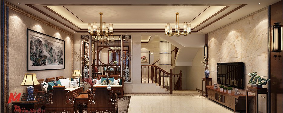 柳州201-300平米新中式風格大信海岸家園家裝設計效果圖