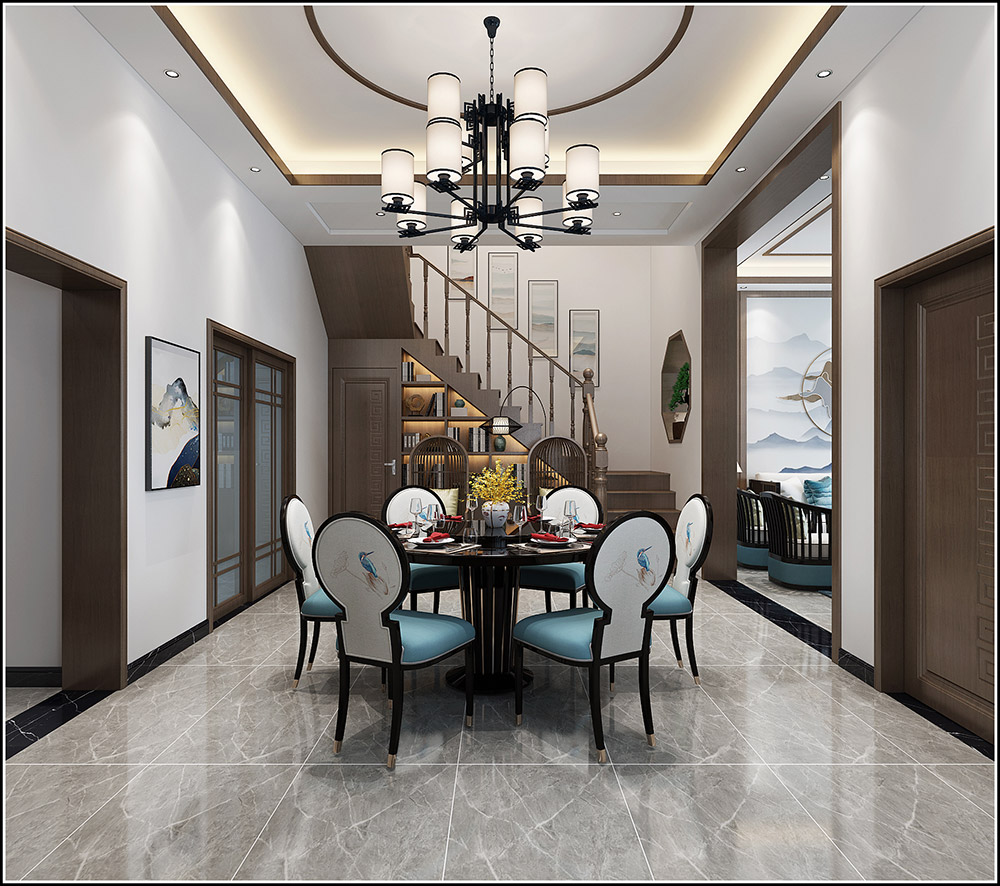 楚雄彝族自治州復興苑別墅新中式風格裝修效果圖