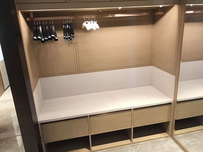 衣帽間要保持足夠的照度,如果照度不夠,會(huì)帶來晦暗的感覺,找衣物就不太方便,不利于換裝。