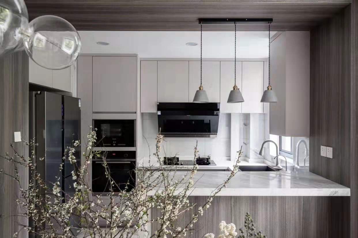 四、廚房的天花板吊頂宜用淺色,地板的顏色宜深,以符合天輕地重之意。從視覺上也不會有頭重腳輕或壓頂之感。