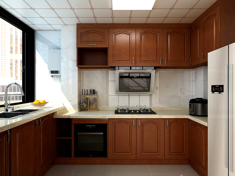 2、我們還可以根據(jù)廚房的空間大小選擇合適的廚房顏色,如果廚房空間過高,那么可以采用深色調(diào),讓空間變得狹小和厚重,如果廚房的空間太小,則可以采用明亮的淡色調(diào),讓廚房空間在視覺上變得更急寬敞。