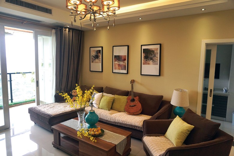 米黃色的簡約家居風總有種舒適恬靜的感覺,沒有張揚的色調,也沒有復雜的裝飾,一切都是那么自然而然,好像一個專門用來下午茶聚會的小天地,三五知己,喝著精心烹煮的熱茶或者咖啡,吃著糕點,享受一個慵懶閑適的下午。本案例的業主是一位年輕的白領女十,每天結束繁忙的工作后最需要一個氛圍自由放松的居住空間。因此,設計師選用米黃色作為墻面的色調,房門選用同類暖色系搭配,再選用重木色的家具與淺色調的空間環境形成明暗對比,使空間達到一種既放松休閑又不失穩重大氣的感覺。